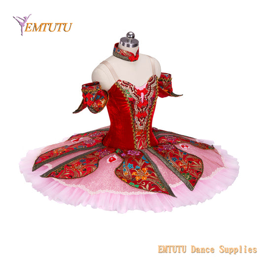 EM1123 EMTUTU Adult Child Professional Ballet Stage Tutu Red Chinese Doll Variation Classical Ballet Tutu Costume